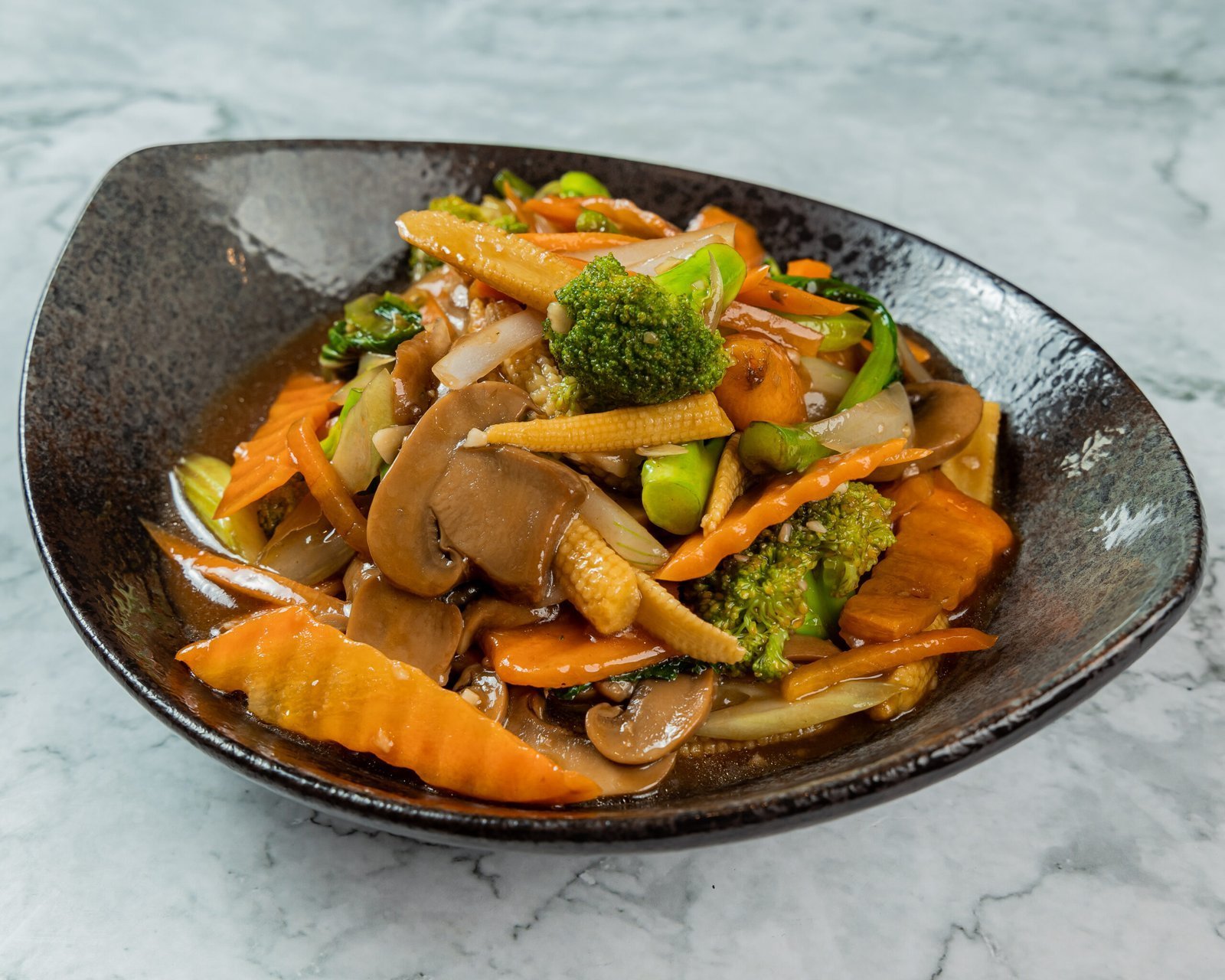 Mixto de vegetales y legumbres sazonados y salteado al wok.